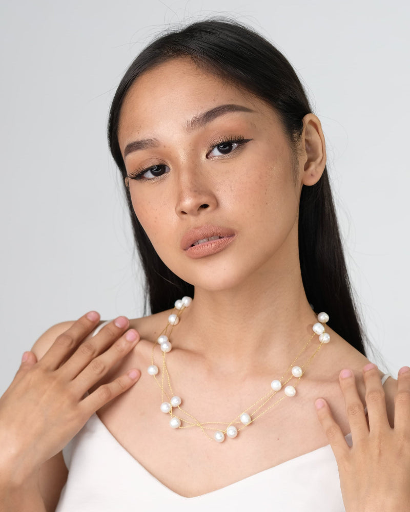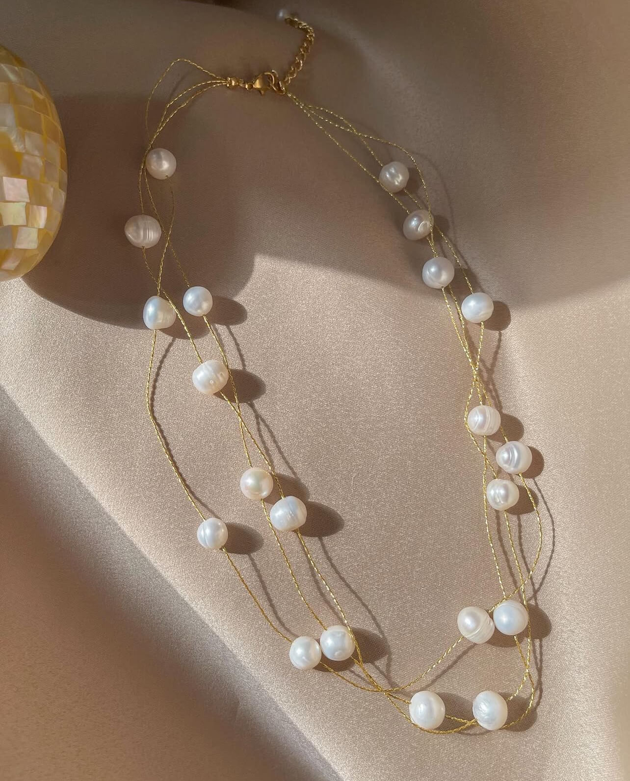 Upgrade your style with our stunning 3-Layered Station Necklace. This piece features delicate freshwater pearls on elegant gold thread, perfect for a chic and layered look. The adjustable length of 16-18 inches ensures a perfect fit for any neckline. Crafted with Gold Plated Stainless Steel lobster clasp.