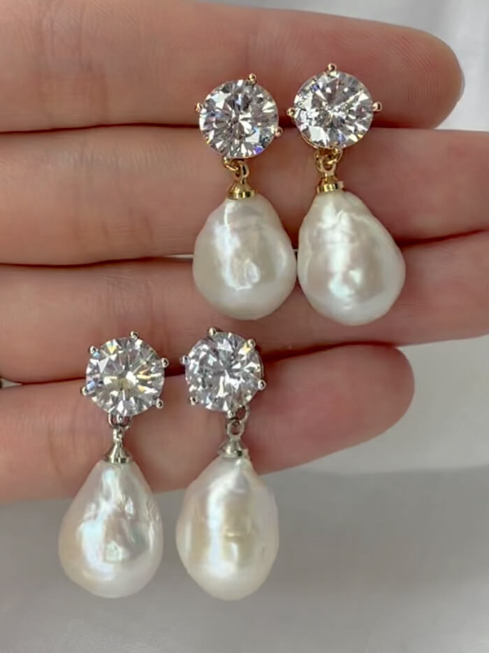 Exquisitely crafted, showcasing a brilliant, round pearl embraced by a dazzling halo of shimmering crystals. A timeless piece that adds a touch of pure elegance and sparkle to any look.
