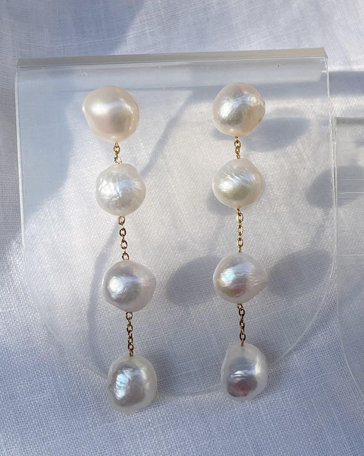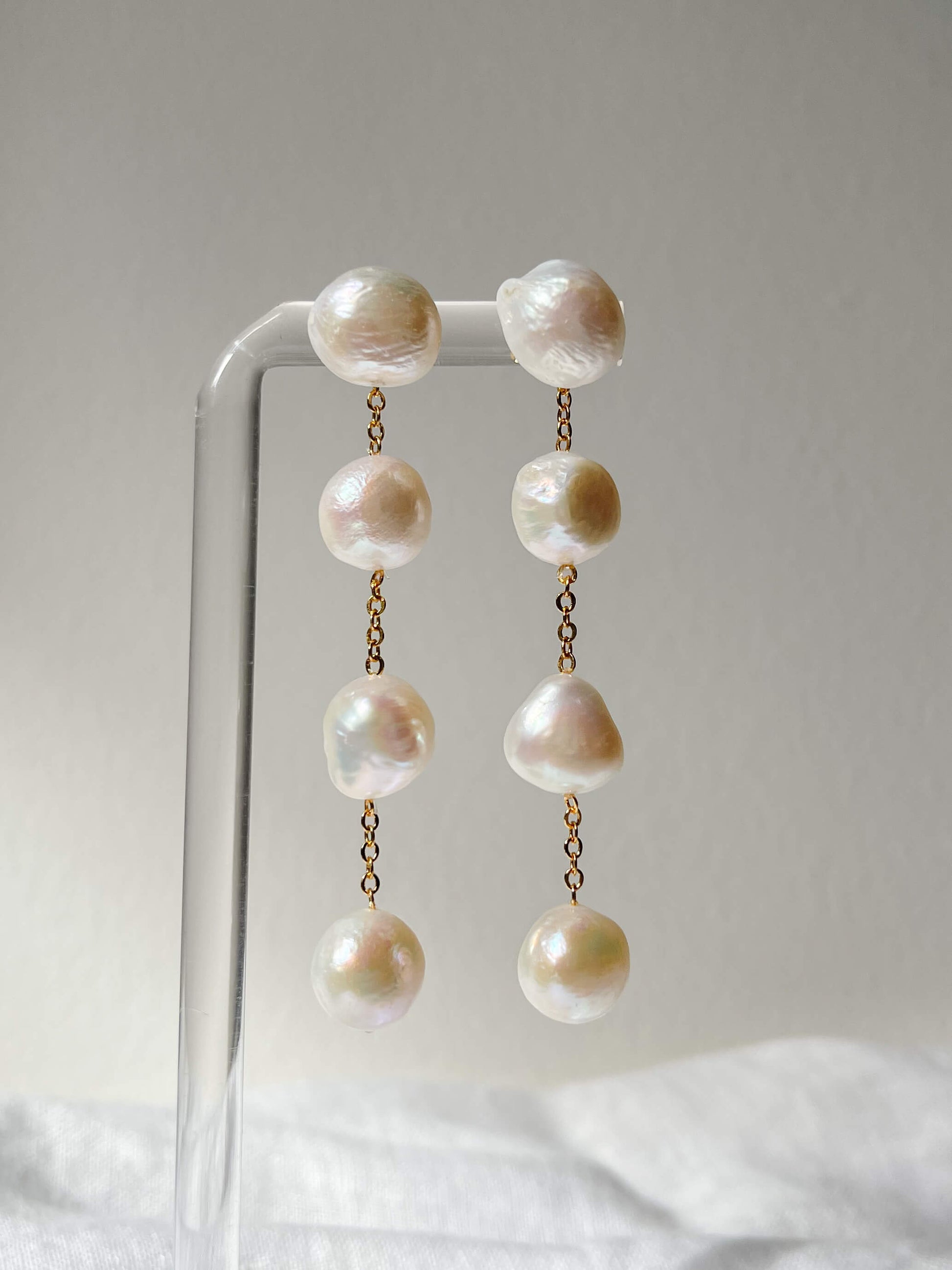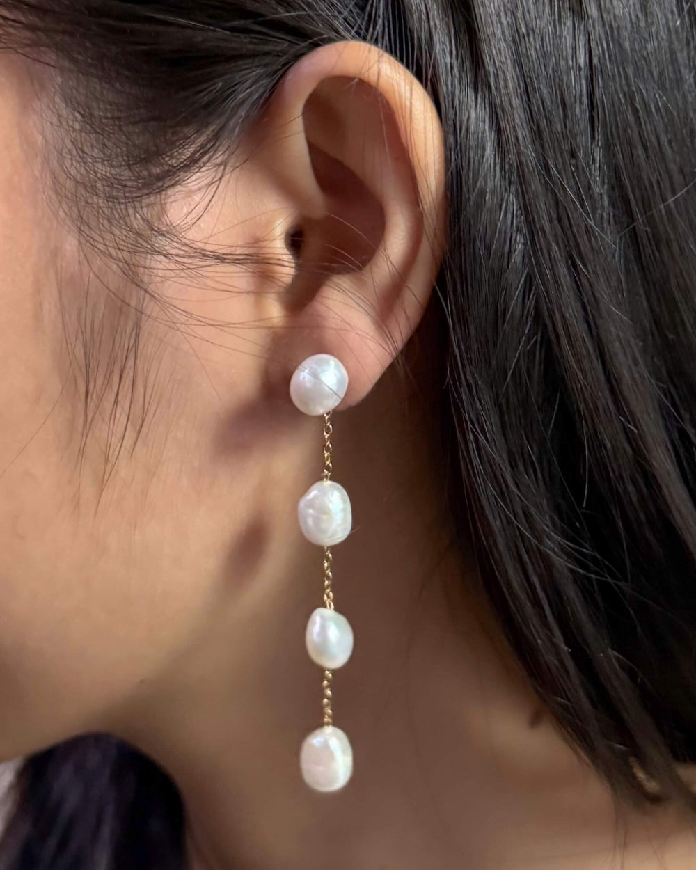 Versatile and elegant. These Keshi pearl drop earrings feature unique, organic pearls. With detachable studs, you can wear them as a simple stud or as a full 3-inch dramatic drop for a look that goes from day to night.