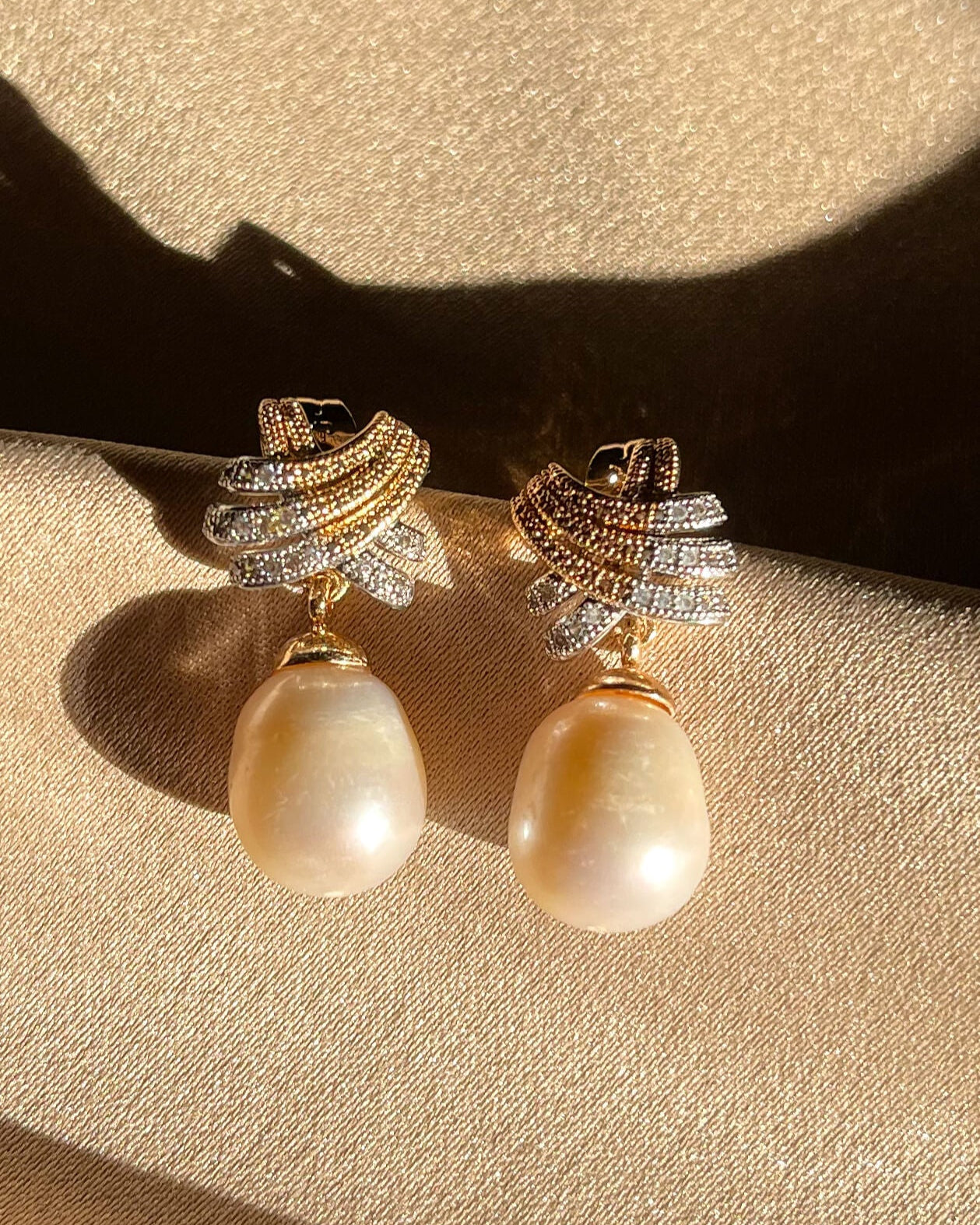 Sophisticated and striking, these freshwater pearl drop earrings feature a unique textured stud adorned with shimmering crystals, from which a lustrous 10-11 mm pearl gracefully hangs. Perfect for making a luxurious statement, these earrings blend classic elegance with modern design.