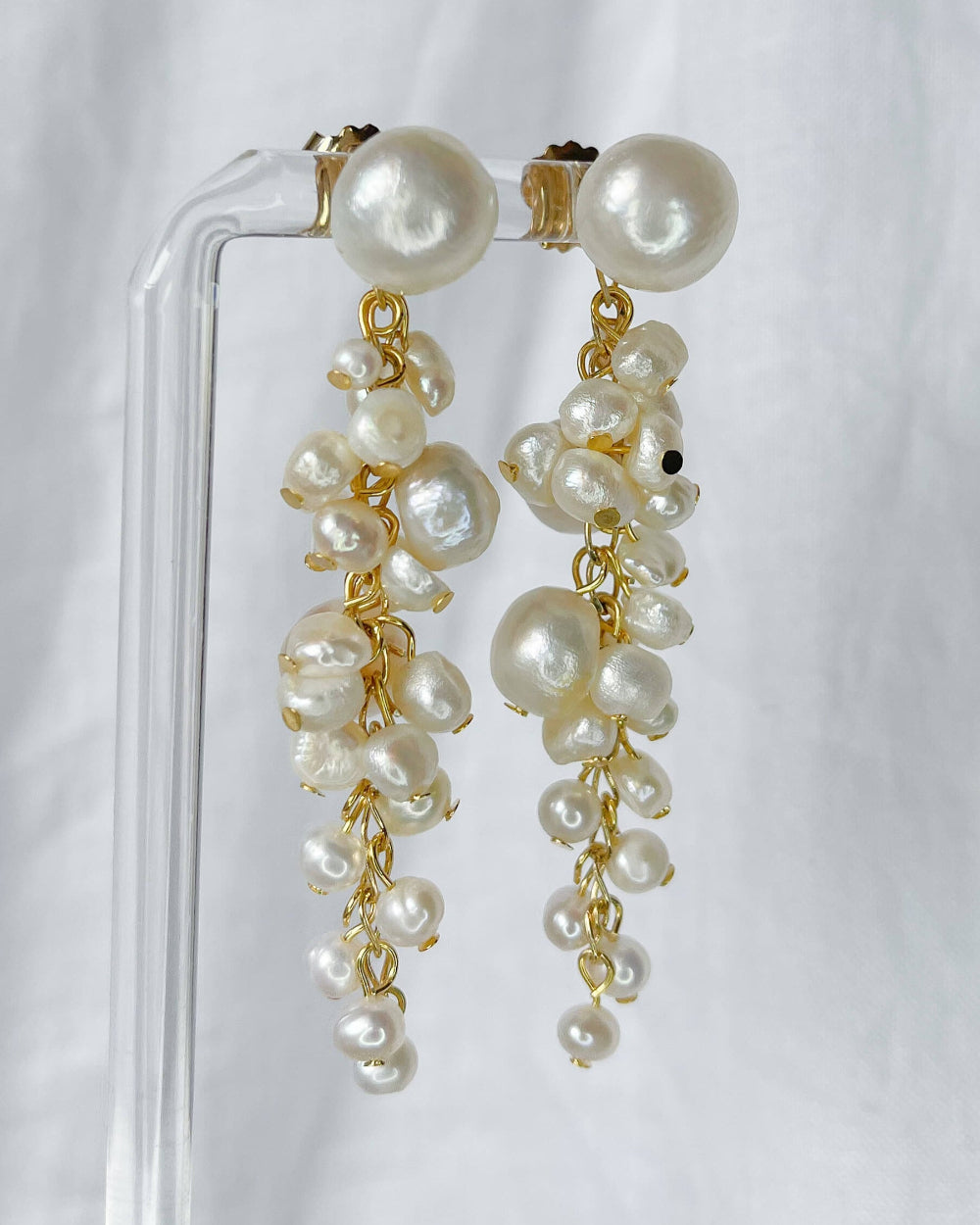 Embrace enchanting elegance with these grapevine-inspired bridal earrings. Featuring a delicate, intertwining design adorned with shimmering accents, these earrings boast detachable Keshi pearl studs for versatile styling. Wear the elegant studs alone or attach the full 2-inch drop, complete with unique Keshi pearls, for a truly captivating bridal look.